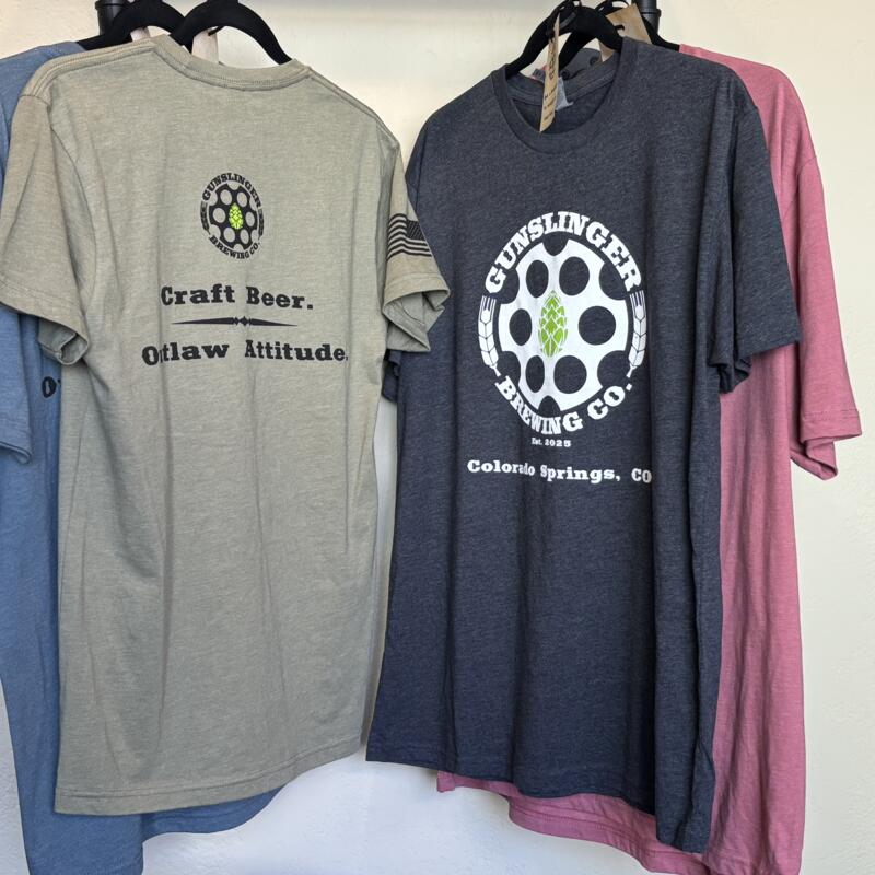 T-Shirts with the Official Gunslinger Logo. Available in blue, olive, charcoal, and mauve.